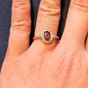 New in box, never worn Natural Garnet 4x6mm Accent Stones 1.0mm CZ stones 18K rose gold plated Ring size 5