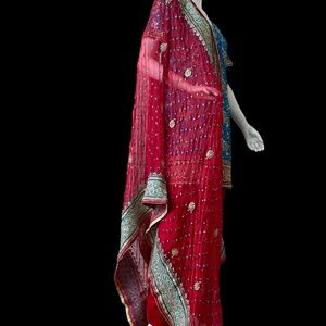 Gorgeous Salwar Kameez in red and blue with dupatta. Medium size. Perfect condition, brand new, never worn.
