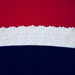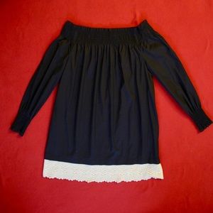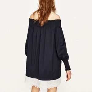 New with tags Zara Navy Blue off shoulder dress with beautiful white lace trim