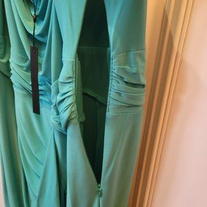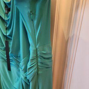 New Noir, NWT, Size 22, sleeveless, fully lined, ruched dress with long side Zip, ruched waistline and scalloped detail, cowl neckline. Adding a brooch to the waist detail will make this an extra special looking dress perfect for dressy occasion.