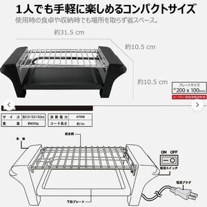 Item is approx 31.5cm x 10.5cm. Uses AC100V. Approx 620g in weight. Great to use for indoor grilling or small condo balcony grilling.