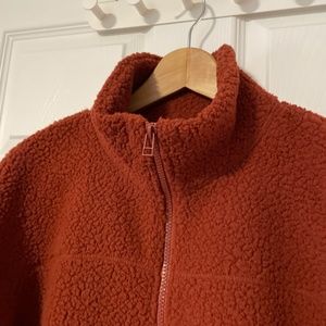 New Old Navy Sherpa fleece zip up funnel neck rust burnt orange size XS