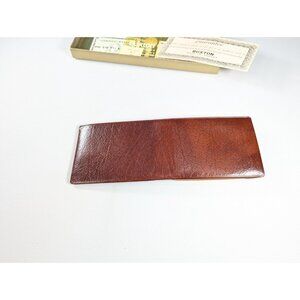 Condition: new in original BUXTON retail box, the leather unfolded and the item has never been used. The plastic ID window and sleeves with some age related marks, including yellowing of the plastic. There is a faint musty smell from age and storage - which should come out with airing and use.