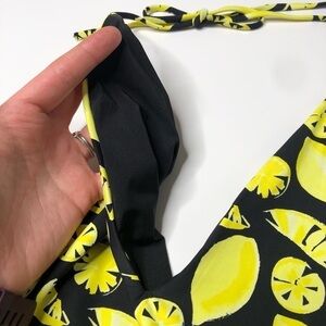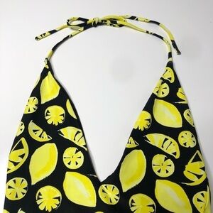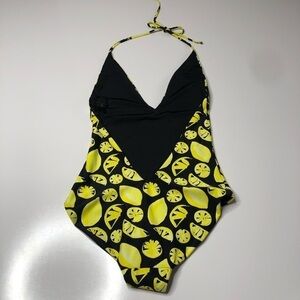 New Onia Lemonade Lemon Black & Yellow Deep V Halter Neck Tie One Piece Swimsuit