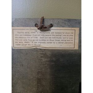 Explore a piece of history with our New Orleans Vieux Carre Antique Roof Slate Art Tile. Each vintage roof slate tile measures 6 inches in height and 5.5 inches in length, offering a glimpse into the architectural charm of the 1800s. These tiles are a testament to the craftsmanship of the era and are ideal for collectors fascinated by cities and towns with a historical touch.Crafted with an eye for detail, these unbranded slate tiles do not bear any signatures, preserving their authentic antique appeal. Whether you're a historian, an architect, or a lover of unique decorative pieces, these tiles will add a touch of vintage elegance to any setting.
