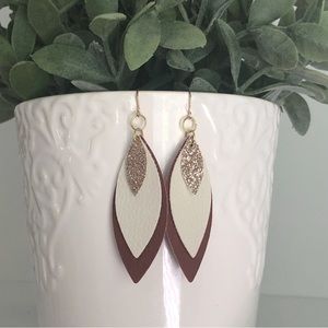 New Oversized Faux Vegan Leather Dangling Handmade Layered Earrings Glitter Gift