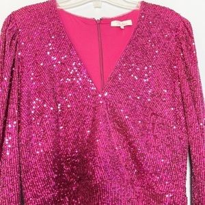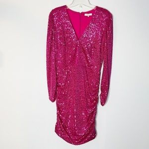 New Parker Dark Pink Arienne Sequinned Surplice Mini Dress US 6