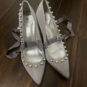New Pedder Red x Fleamadonna Limited Edition Pearl Ribbon Tie Grosgrain Pumps