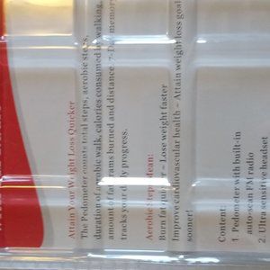New Pedometer W/Auto Scan Tuner FM Radio, Ultra Sensitive Headset Red & Silver