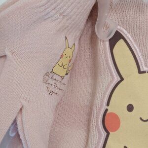 New Pikachu Pokémon Pink Pom Beanie hat with mini stretch gloves