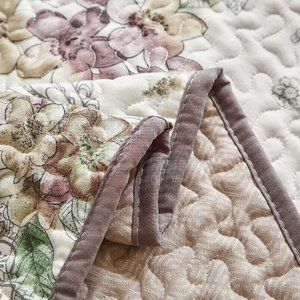 New Pink & Beige Floral 3-Piece Bedding 100% Polyester Quilt Set • Reversible • QUEEN