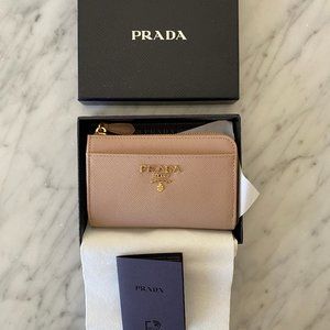 (New) Prada Saffiano Leather Keychain Wallet