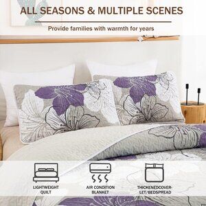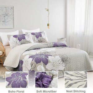 New Purple Bohemian Floral Quilt Set • 3 PC • KING Size