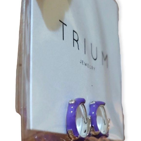 Purple enamel and .925 Sterling silver Huggies. Brand new in package!