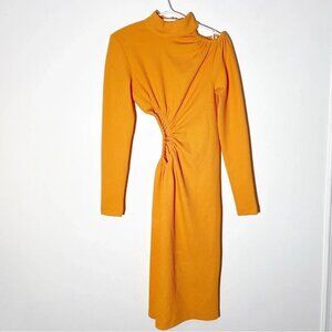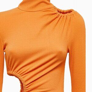 This summer-ready 'Alice' dress is made from orange ribbed jersey enhanced with stretch and 55% recycled fibers. It's detailed with a curved cutout at the waist.