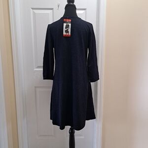 New! Rachel Roy Knit Dress Black Blue Animal Print Womens Medium 3/4 Sleeve