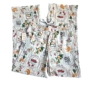 New Rachel Zoe Linen Blend Pants Sz S Wide Leg Cream & Green Tropical Fruit NWT