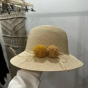 New Raffia Sunhat with Pompoms