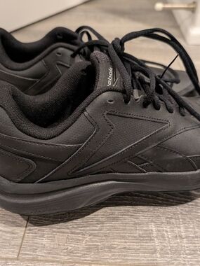 New Reebok Walking shoes in all-black design. Tried on but never worn. Ladies size 8.5 or Mens 7.