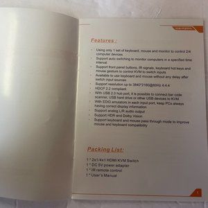 * 4 advanced switching modes: The HDMI KVM switch has front panel keys for selecting manually, keyboard hotkeys for quick channel selection, mouse gesture for fast switching, and just think how cosy you could be after the whole day at work when you switch the signal via IR remote control (AAA batteries not included)! Also has auto scan function with adjustable interval for monitoring and testing.