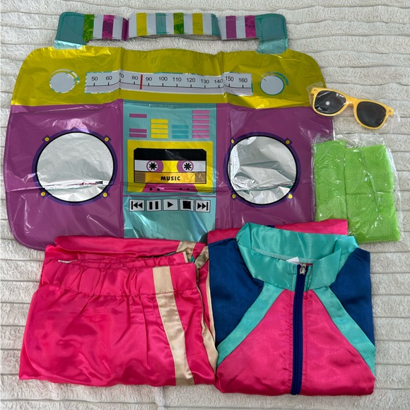 Comes with jacket, pants, jeans and wrist bands, sunglasses, radio balloon.