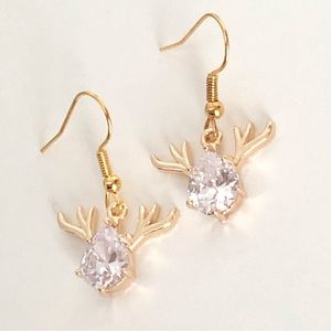 New Rhinestone Crystal Deer Stag Reindeer 18k gold plated hooks Sparkle Earrings