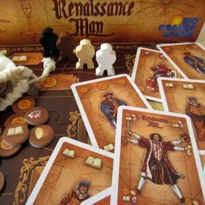 In Renaissance Man, each player is an example of the title character – skilled as a scholar, a merchant, a knight, and a baker. Throughout the game they will hire, recruit, and train others with the goal of producing a Master of one of these four areas of study. Each round consists of players creating actions by combining a worker in play with a card from hand.