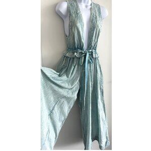 New Romantics Overalls Washed Cotton Light Turquoise and White Color with Lining Sz 2