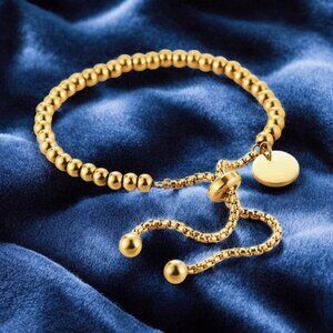 New Round Gold Stainless Steel Adjustable Bead Bracelet