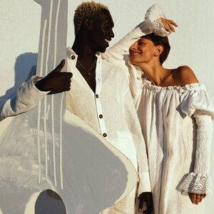 New SLEEPER White Silk Charmeuse Puff Sleeve Smocked Opera Dress XL
