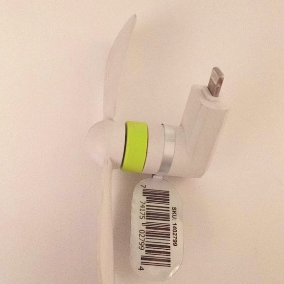 SMART Accessories Mobile Fan is plug-and-play for cooling, lightweight and compact. It has safe and flexible blades. There are 8 Pin tips for use with Apple devices.