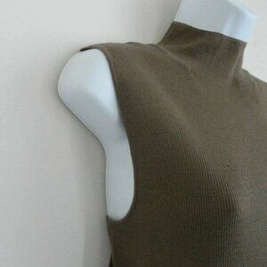 New ST. JOHN Truffle Brown Wool Ultra Fine Turtle Neck Rib Knit Top Medium
