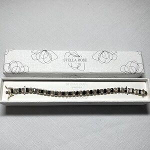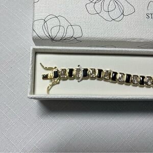 New STELLA ROSE black & clear crystal tennis bracelet. Strong clasp. Gold plated