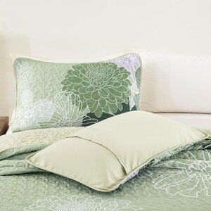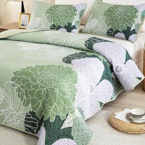 New Sage Green Bohemian Floral Quilt Set • 3 PC • KING Size