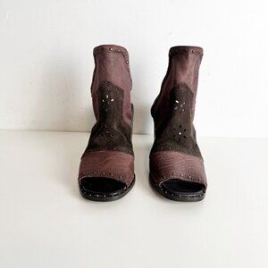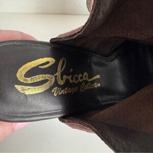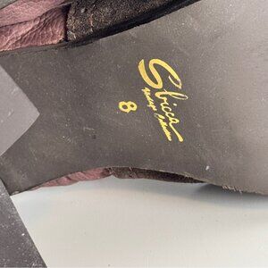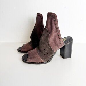 New Sbicca Leather and Suede Block Heel Sandals in Dark Burgundy Maroon
