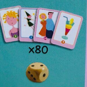Contents: 1 game board, 4 wooden pieces and 1 wooden die, 80 cards and 1Multi-lingual rule booklet