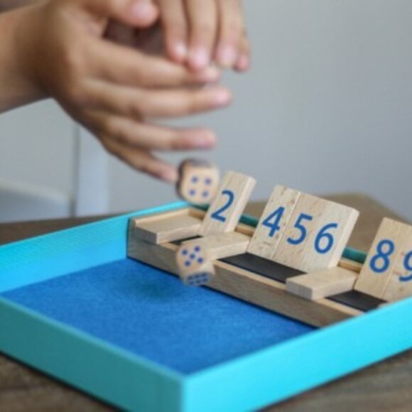 A fun dice game for 1-4 players. Players roll dice and "shut" (flip down) numbered tiles that add up to the total of their roll. The goal is to shut down as many numbers as possible — ideally, all of them!