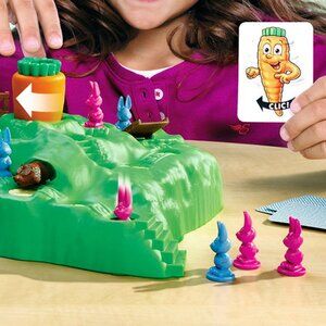 🎁CONTENTS: 1 hill with moving holes, a sneaky mole, a drawbridge, a fence and a carrot to spin, 16 rabbit tokens, 48 cards, 1 rule of the game. Works without batteries!