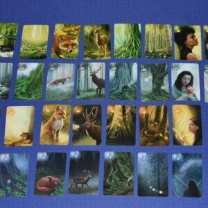 Discover the magic of an enchanted forest. Play cards to reveal a certain place and time -- and place your stake in one of the two. Explore a location at dawn, day, sunset, and night, or see what the whole land looks like in the dark. Each card offers two choices, and its up to you to uncover the world that awaits.