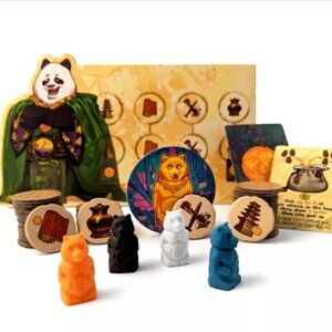The game features amazing components and beautiful art. The bear statues are highly-detailed resin models, and the modular game board changes based on the number of players. This game looks great both on the shelf and on the table.