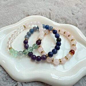 New Set of 3 Natural Semi-Precious Stones Bracelets