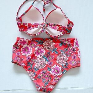 New Shade & Shore Padded Halter Top & High Waist Bottom Red/ Pink Floral 34C/ M