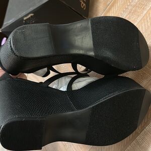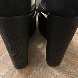 New Shoe Dazzle Kajsa High Platform Black Wedge Sandal with Ankle Ties