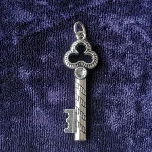 Brand new key shaped pendant. Silver color. Costume jewelry.
