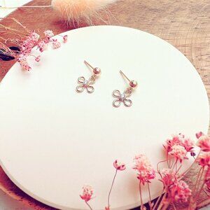 ♥ delicate and cute 14k gold filled ball stud earrings (ball size is 4mm) with flower charm and mini cubic zirconia (flower is 7.5mm, cubic zirconia is 2mm)