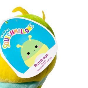 Squishmallows 18cm Rutebega the Caterpillar. Add 5" Rutebega the Caterpillar to your squad! She is green with a soft white tummy and pink cheeks. Have you ever met a caterpillar who can’t live without chocolate? Peanut butter cups and chocolate chip cookies are two of Rutabaga's favourite treats. And If you're making cookies Rutabaga has just one rule to follow: always add more chocolate chips!