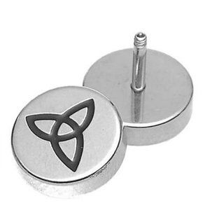 Add bold Celtic style to your look with these stainless steel Celtic Triquetra fake cheater stud earrings. Featuring the ancient Triquetra knot design, these earrings create the illusion of 10 mm plugs while comfortably fitting standard piercings. Perfect for anyone who wants the look of stretched ears without the commitment!