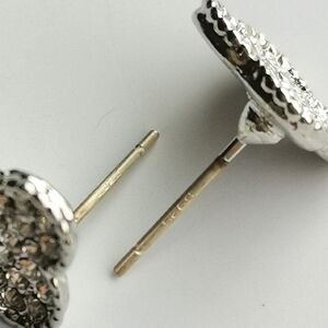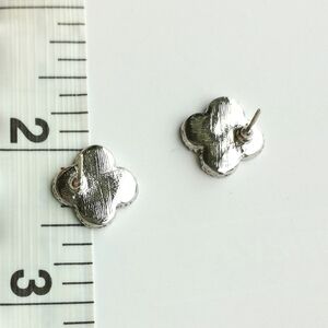 The clover flower is rhodium plated. Rhodium plating prevents tarnishing, so you do not have to polish the silver, which would be difficult with so many stones in the setting.