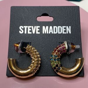 💛 New! Steve Madden Asymmetrical Multi Colour Crystal Gold Hoop Earrings