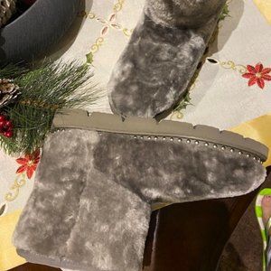 New Steve Madden Fur shoes,grayish with silver buttons, fall,winter&spring shoes